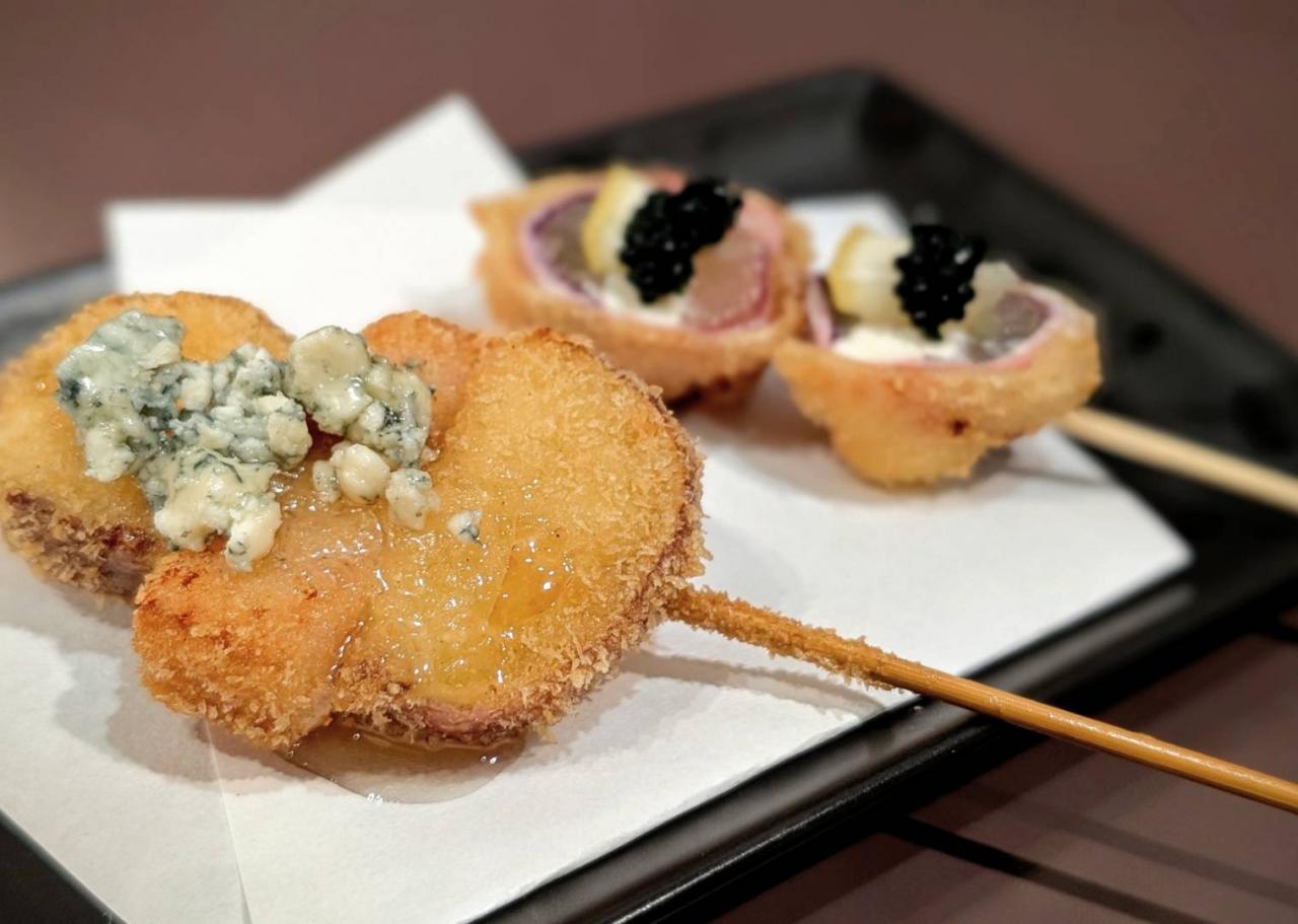 さつまいもベーコンブルーチーズの串揚げ