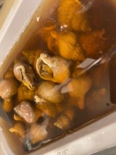 今日またつぶ貝煮付け作りました、のんびり日本酒と合わせてどうぞ