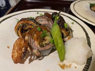 新さんま・茄子・きのこのロール焼き〜肝正油タレ〜