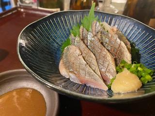 今日のオススメは、カンパチのカルパッチョ 冷やし焼き茄子のソース、ハタハタの漬け焼きです。他にも季節の食材を使ったお料理をご用意しております!