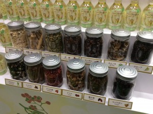 写真は当店では馴染み深い養命酒のブースでの、生薬の瓶詰めです。