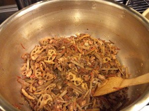 普通のきんぴらなんですが、ウドの苦味のある香りが加わると一味変わって