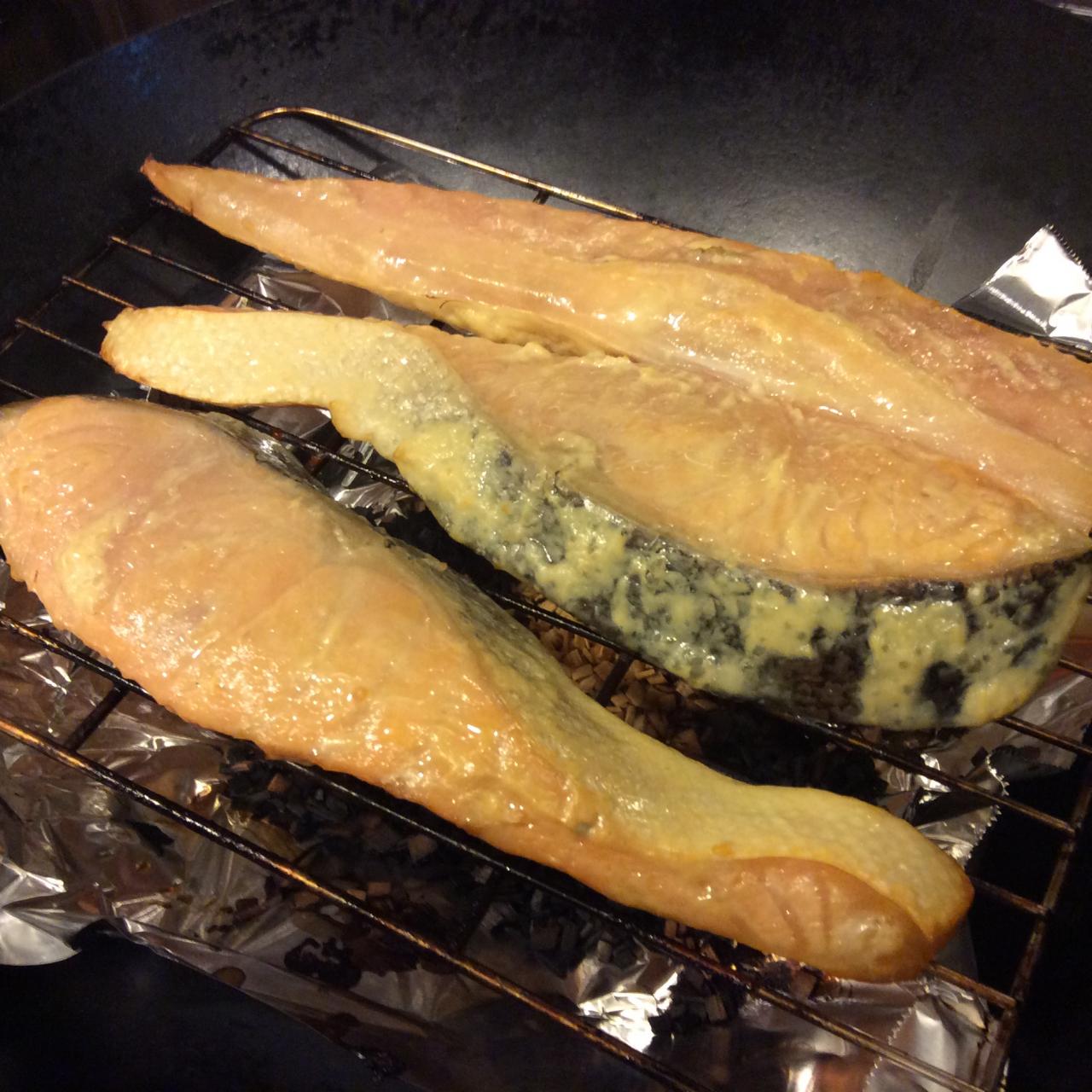2日ほど酒粕と西京味噌に漬け込んだものを軽く燻製しました。