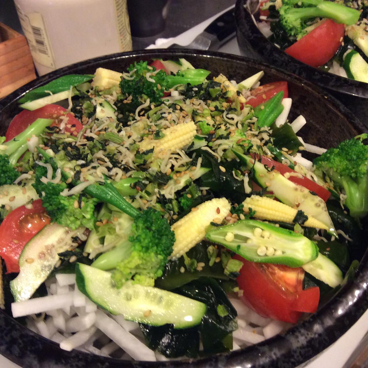 後は醤油ドレッシングとかつおぶしで仕上げますiPadから送信