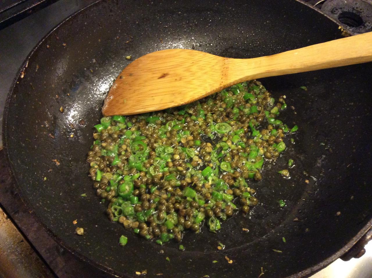 かつお節と醤油の風味と後からピリッと青唐辛子と山椒が効いてくる逸品です。