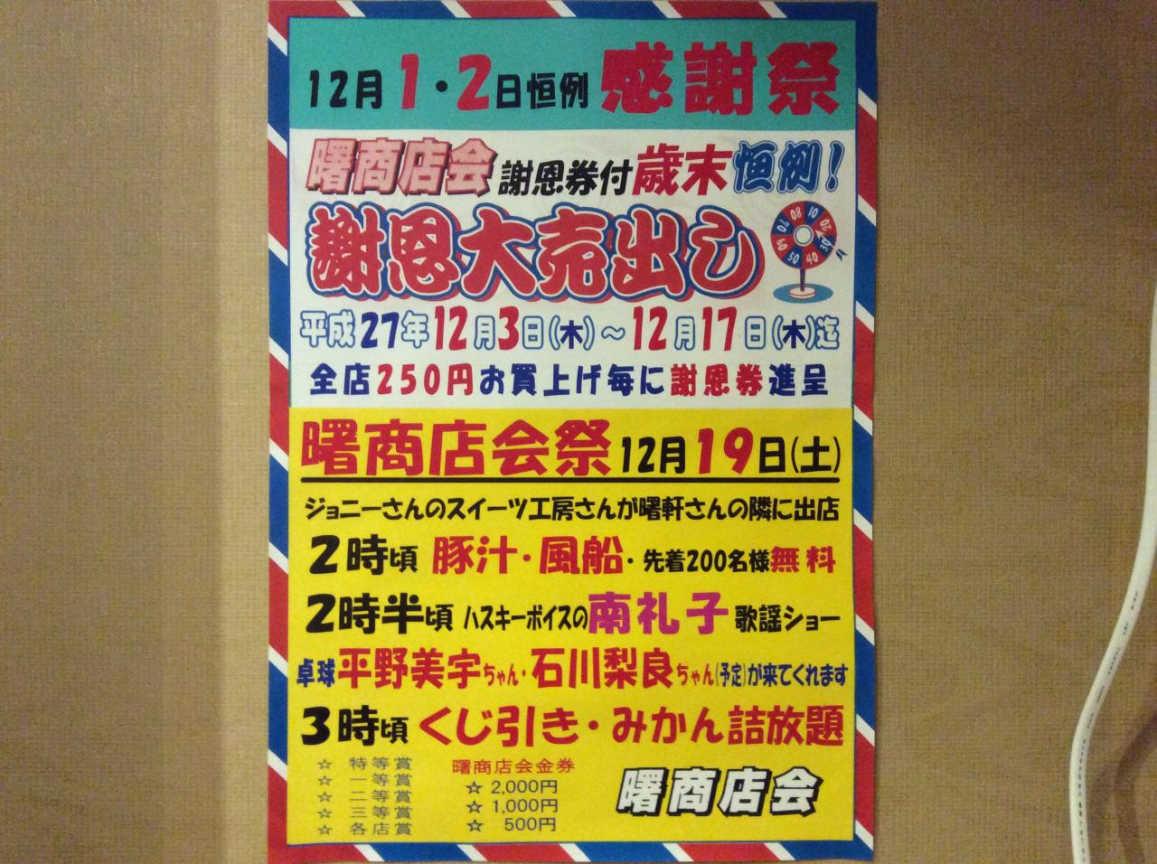 12月19日は恒例の曙商店街感謝祭が開催されます!