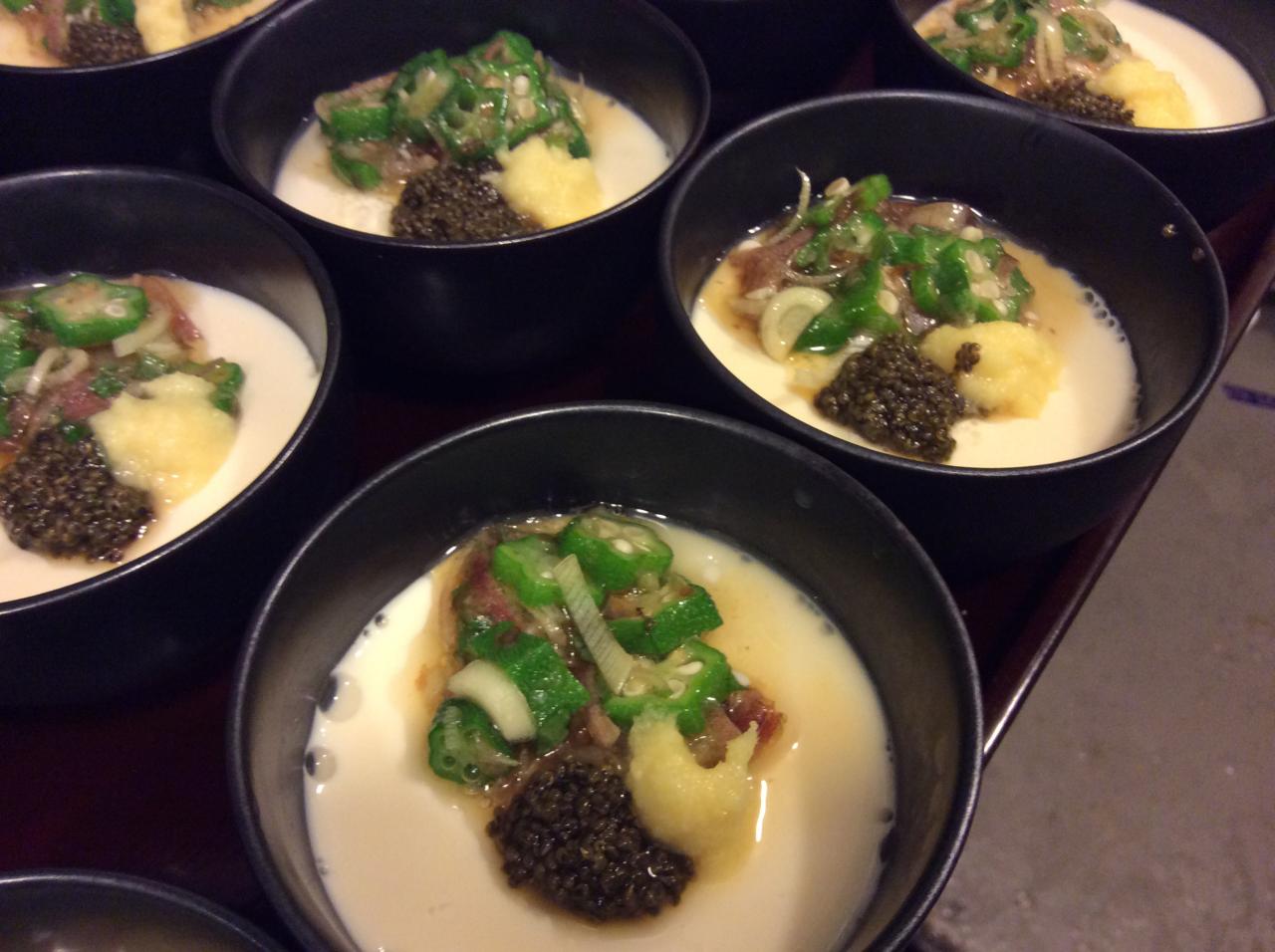 本日のお通しは国産の豆乳をお店で蒸しあげた自家製豆腐です(^^)