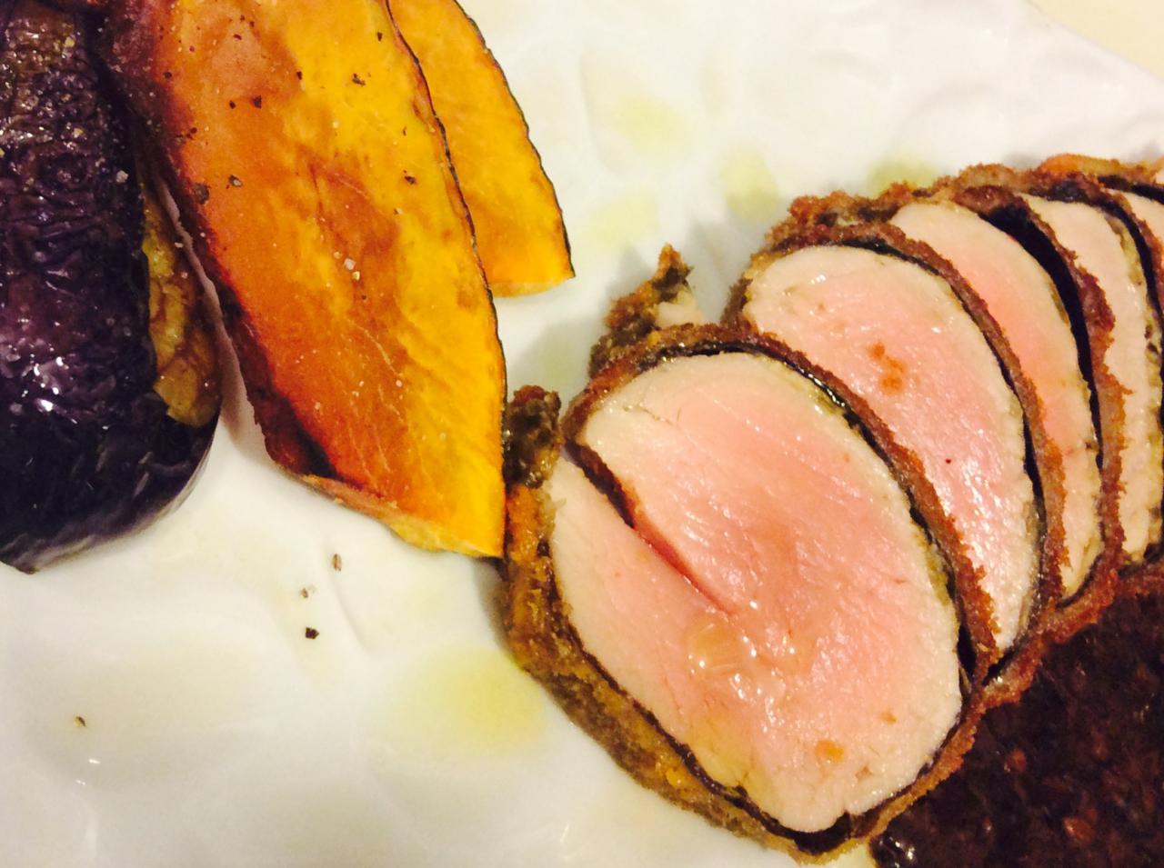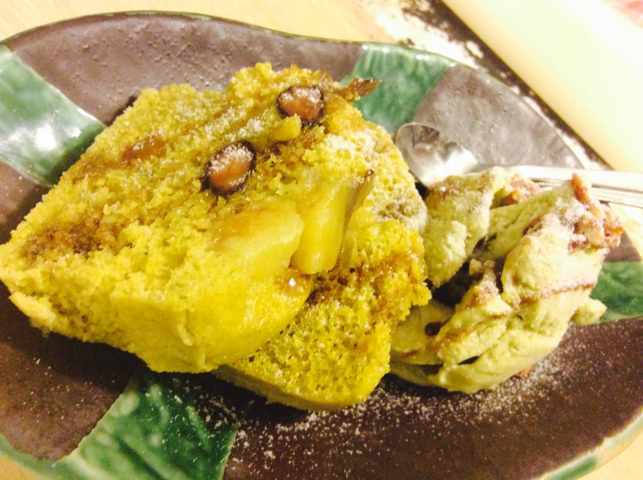 写真はロゼカツレツとかぼちゃと黒豆の米粉蒸しパンです。