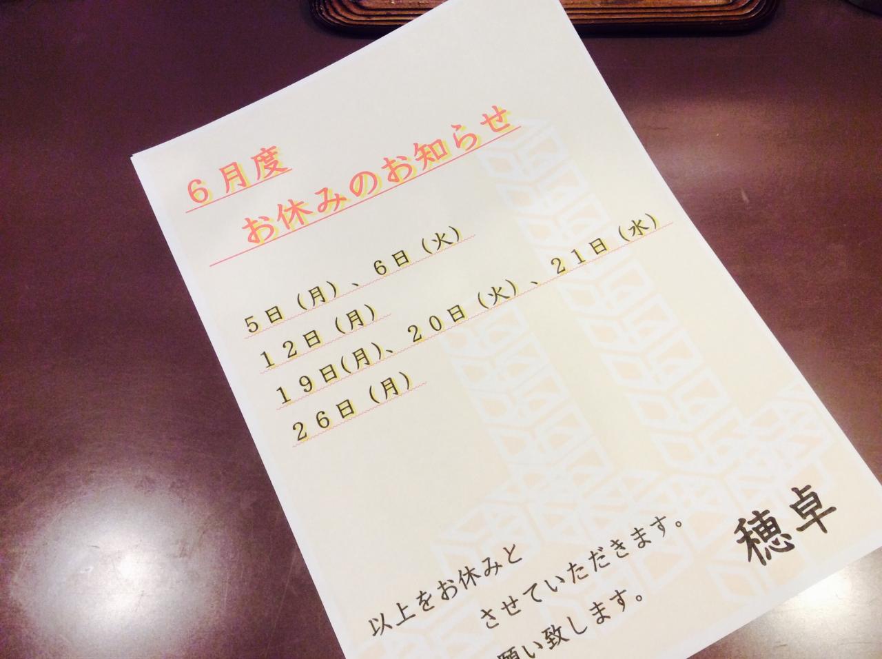 6月度お休みのお知らせです 板橋本町 居酒屋 穂卓