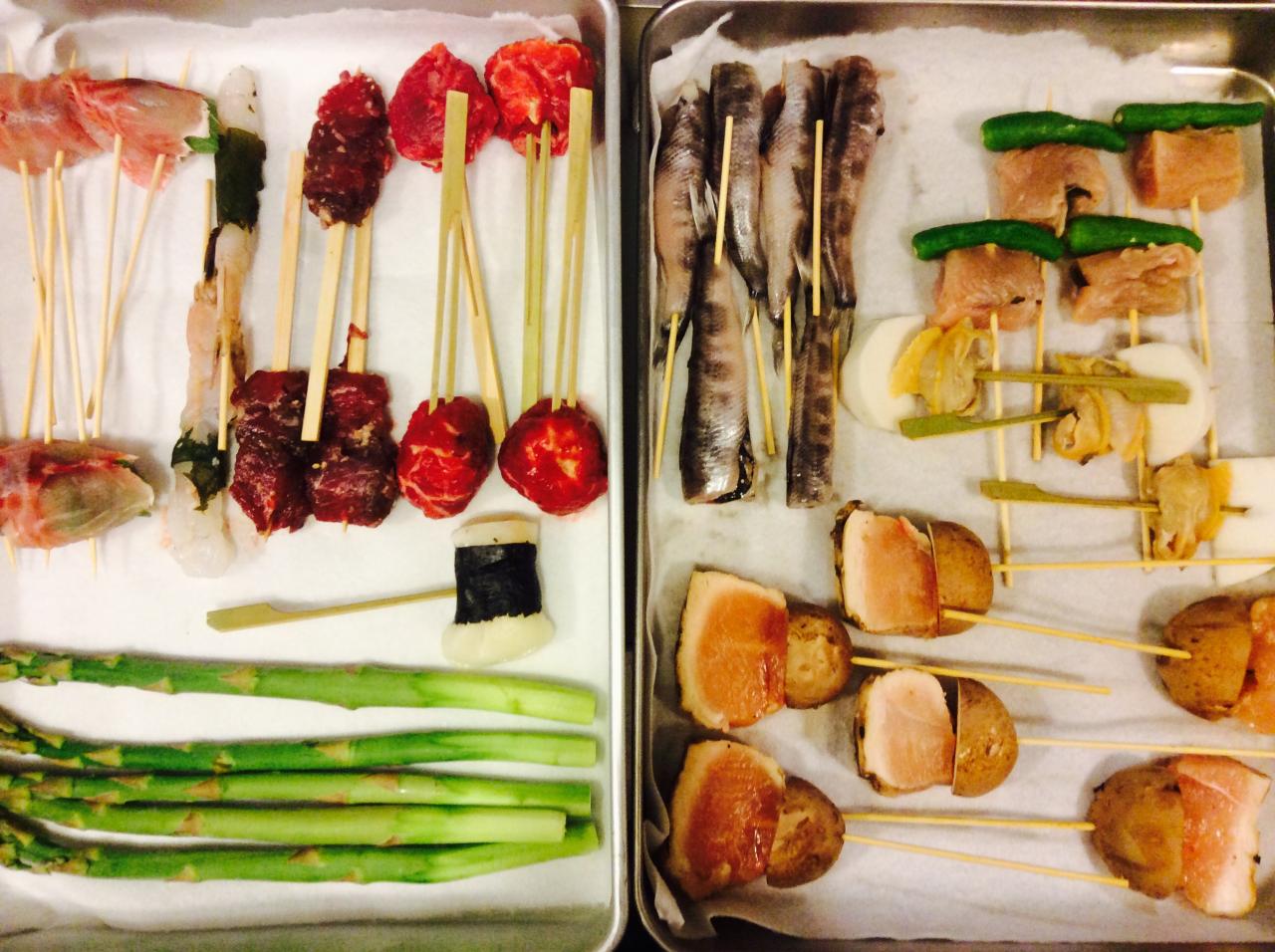 串揚げもメヒカリ、グリルチキン、イサキと空豆など季節のオススメも充実しております!