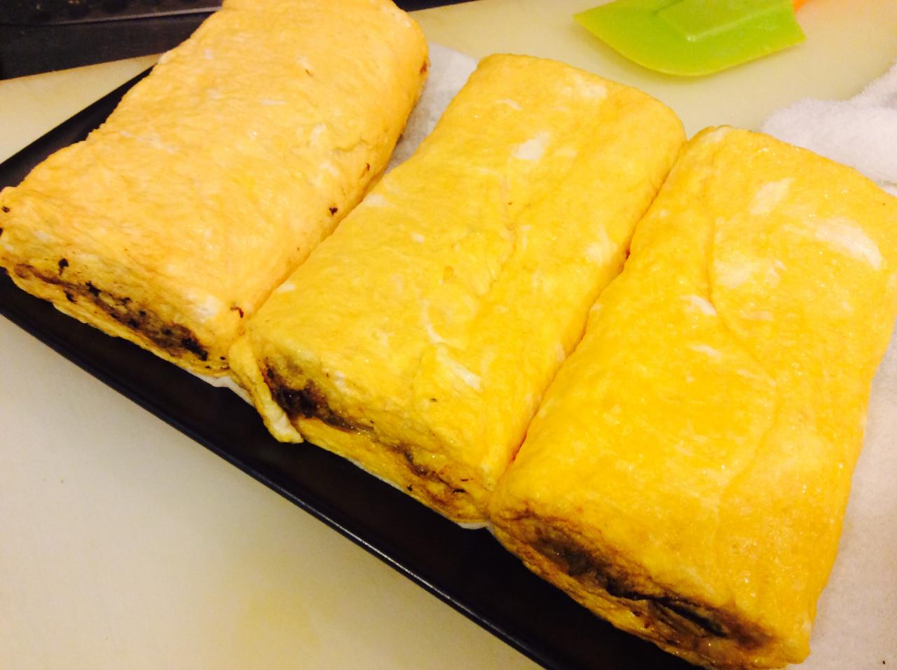 出汁巻き玉子で包みました、みんなが好きな味ですね。