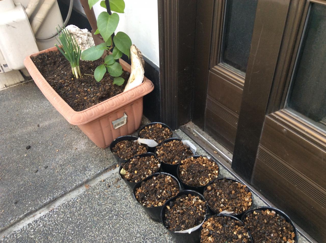 こちらの写真は店頭で発芽を促してるオクラの苗ですw