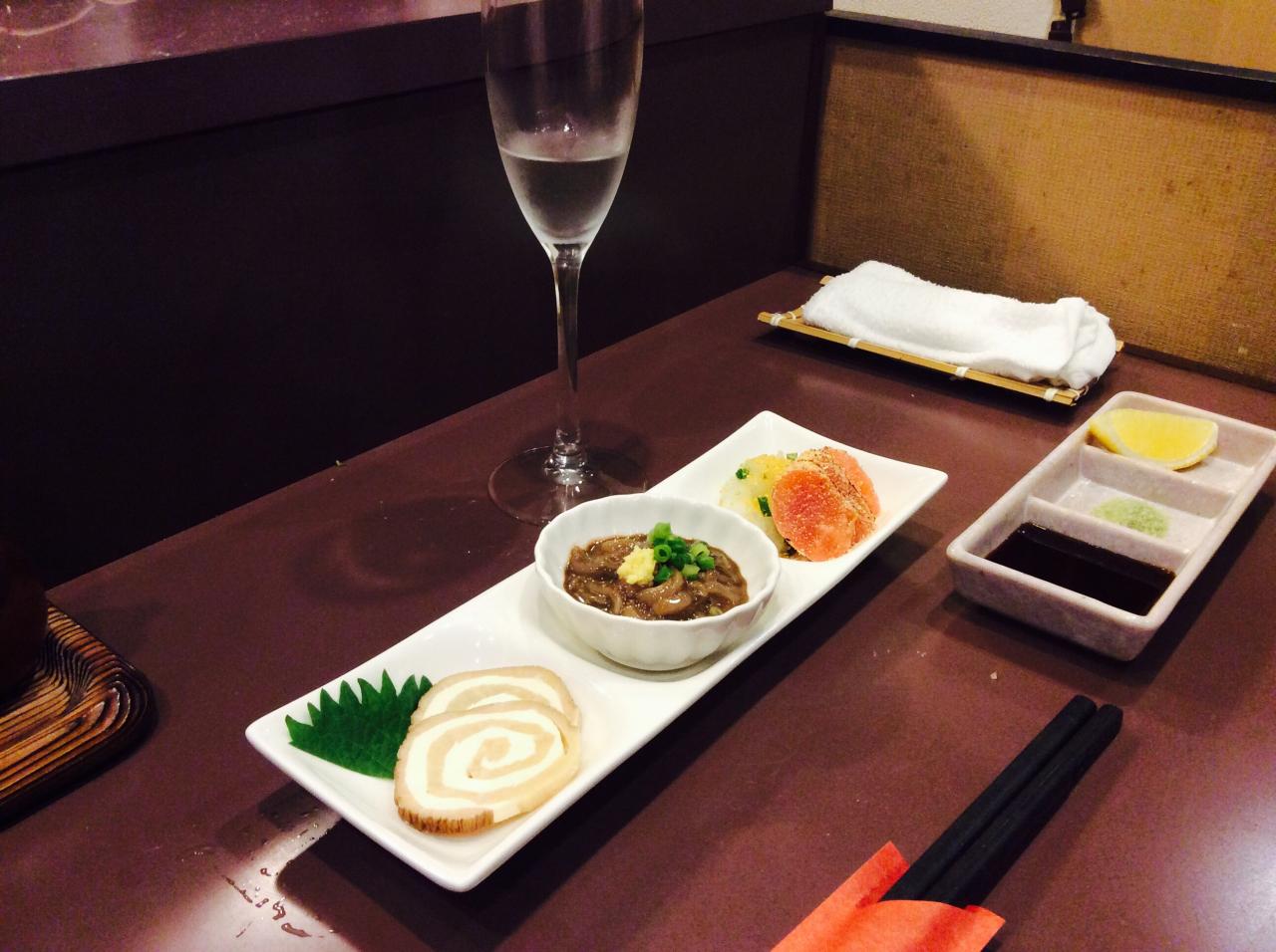 酒肴3点盛り (塩辛は墨入りで味わい深いです)