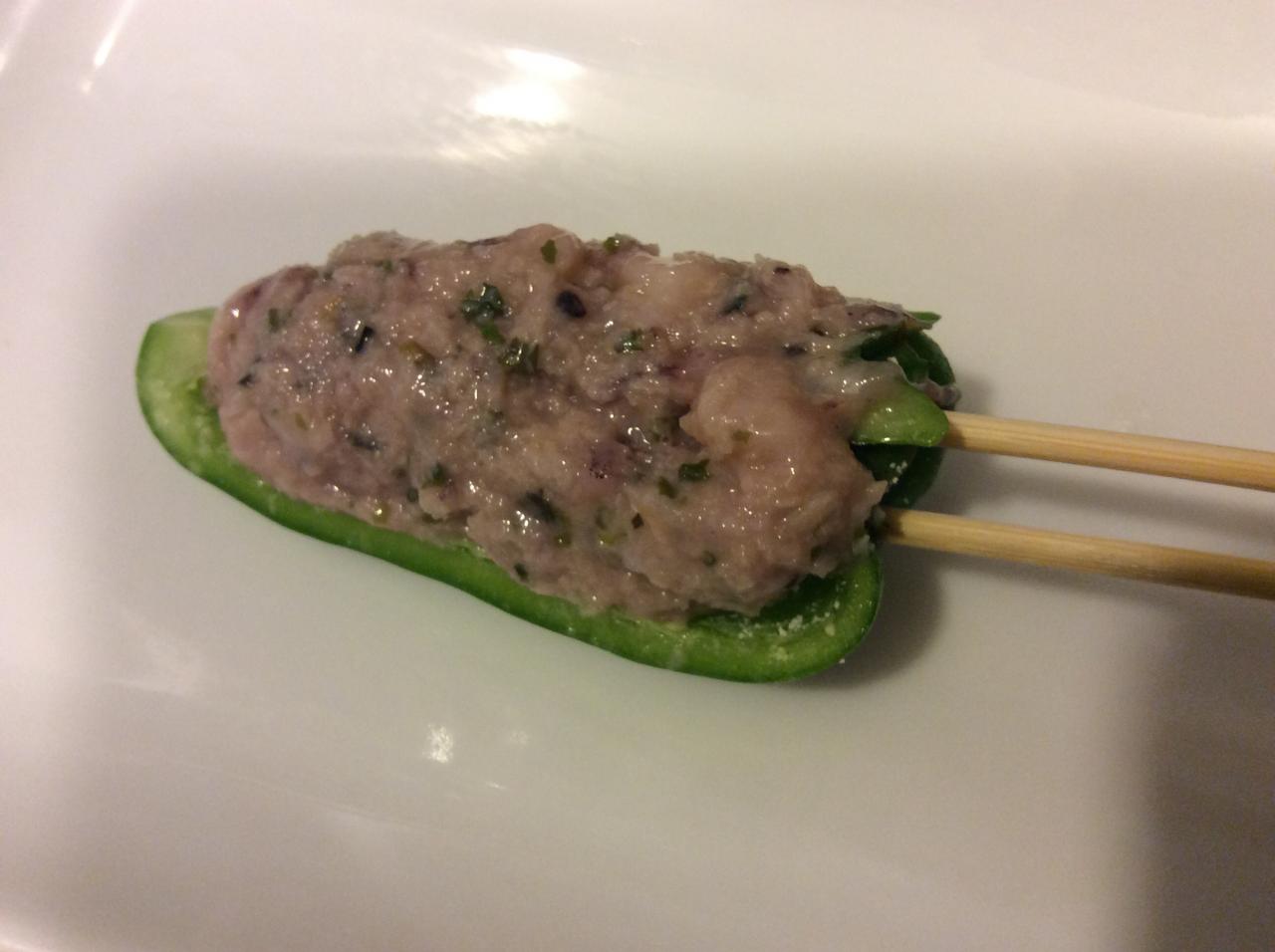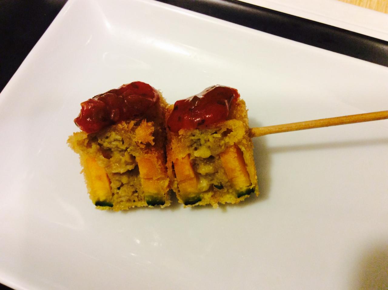 青森名物イカメンチ、ピーマン詰めの串揚げもオススメです、夏らしい美味しさですね。
