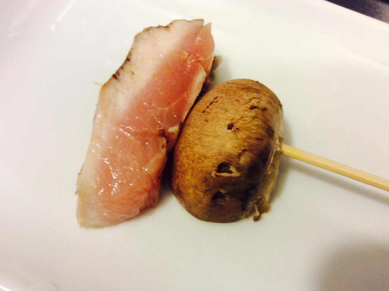 こちらは今日仕込んだ串揚げの「グリルチキンとマッシュルームの串揚げ」です!