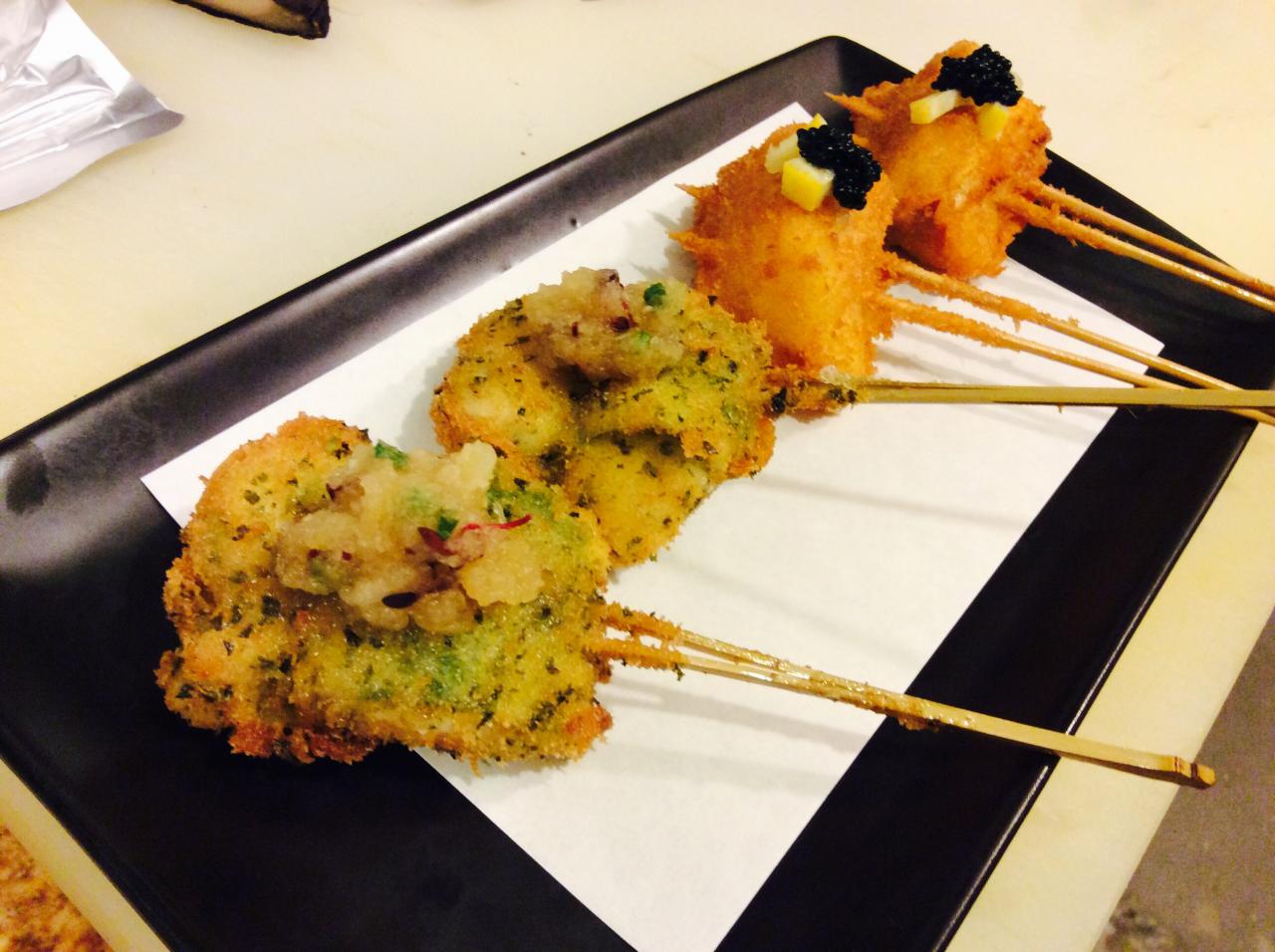 鮭白子の串揚げ(コクがあり美味しいですよ)