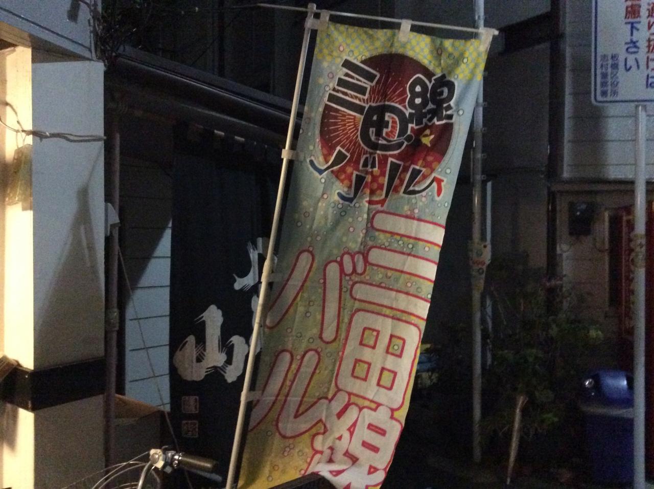 先日三田線バルののぼりを店頭に飾りました(よく目立って格好いいです)