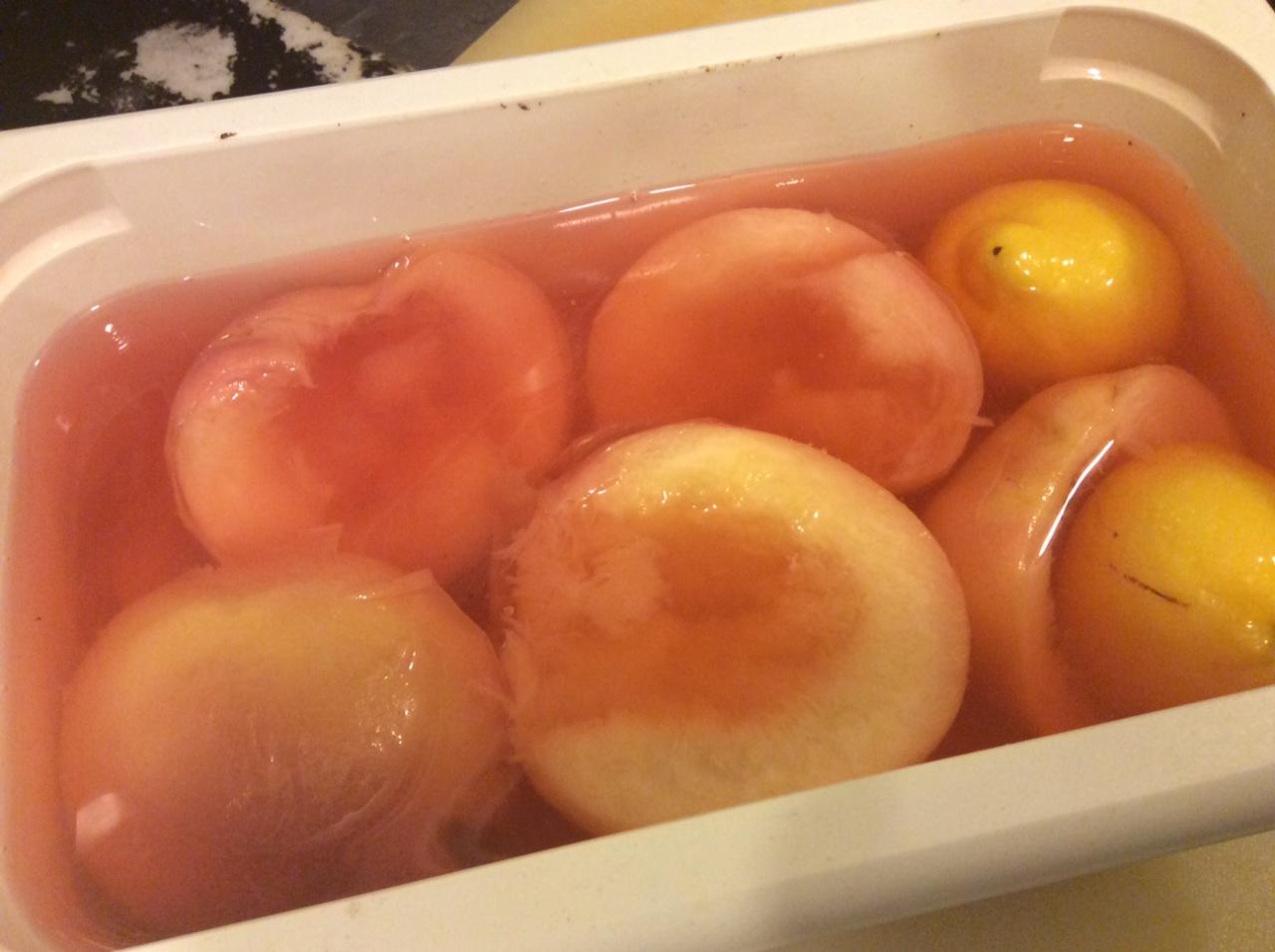 白桃のコンポートを一切れ上に乗せて少し爽やかに。