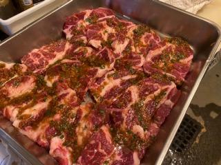 スモークチキンのペペロンチーノ、イベリコベジョータグ リル