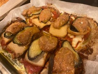 七面鳥パテ、フォアグラ味噌漬け、トマトソース、茄子、エリンギ、レタスのクロワッサン