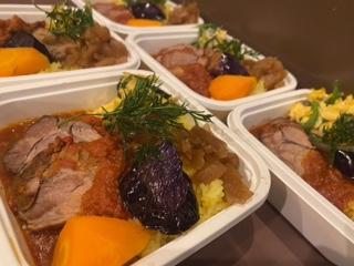 ラム肉をカレーを効かせたトマトソースでしっとり柔らかく煮込みました。本格的な味わいになっています!カレーに相性の良いジャスミンライスでお出しします。今日とれたての葉付き人参も付け合わせています。