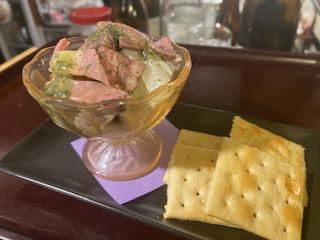 秋のフルーツと牛ハムの水切りヨーグルト和え
