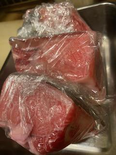 明日のオススメは生本マグロカマの漬け焼きです、脂がのってて美味しそうです、是非とも(^^)
