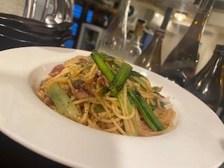 本日のオススメは「牛どて煮〜温玉添え〜」、「ホタルイカとハスネファーム野菜のスパゲティ」です!